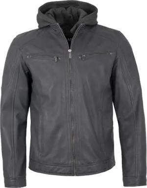 Herren Lederjacke Kapuze Lammnappa grau Größe 60