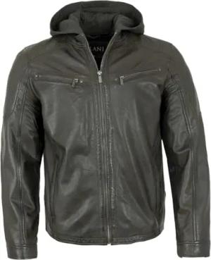 Herren Lederjacke Kapuze Lammnappa Khaki Größe 48