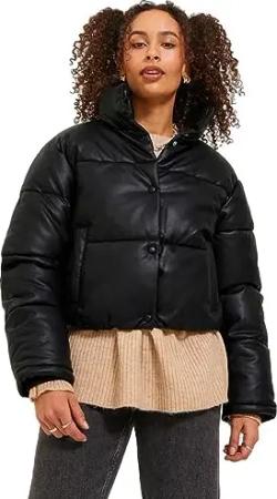Jack & Jones Damen Jxbreezy Faux Leather Short JKT OTW Sn Pufferjacke, Schwarz, S
