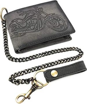 echt Leder Biker Geldbörse quer Hunterleder Portemonnaie Motorrad mit 50cm Kette & RFID Schutz