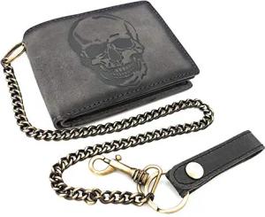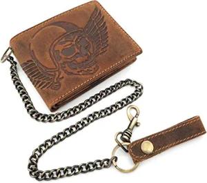 echt Leder Biker Geldbörse quer Hunterleder Portemonnaie Totenkopf Schädel Skull mit 50cm Kette & RFID Schutz
