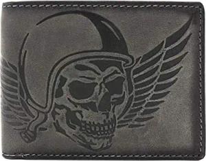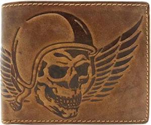 echt Leder Biker Geldbörse quer Hunterleder Portemonnaie Totenkopf Schädel Wing of Hell mit RFID Schutz