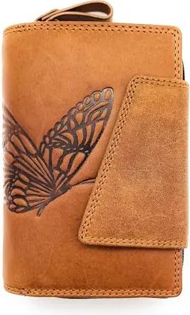 kleine echt Leder Geldbörse Portemonnaie Geldbeutel Sauvage Leder mit RFID Schutz Schmetterling (Braun)