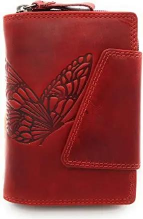 echt Leder Geldbörse Portemonnaie Geldbeutel Sauvage Leder mit RFID Schutz Schmetterling (Rot)