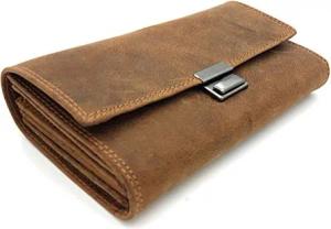 große echt Leder Damen Geldbörse lang Kolibri naturbelassenes Büffelleder mit Smartphonefach Cognac braun mit RFID Schutz