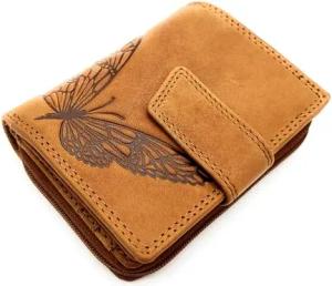 echt Leder Geldbörse Portemonnaie Geldbeutel Sauvage Leder mit RFID Schutz Schmetterling (Braun)
