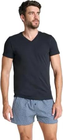 Herren American V-Neck Shirt - 2 Pack, Black, M