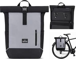 Fahrradtaschen für Gepäckträger Damen & Herren Schwarz Reflektierend - Mika Bike - 2 in 1 Fahrrad Tasche Rucksack & Gepäckträgertasche Hinten - Wasserabweisend