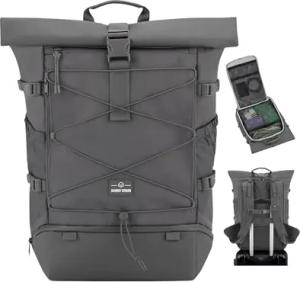 Rolltop Rucksack Damen & Herren Dunkelgrau - Robin Large - Tagesrucksack mit 16 Zoll Laptopfach - Recyceltes PET - 18-22L - Wasserabweisend