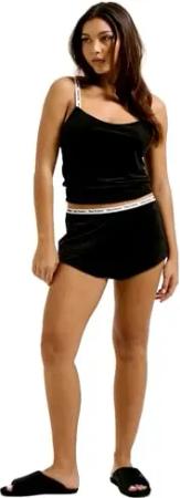 Damen Austyn Shorts-Pyjama Unterteil Hose Schlafhose Schlafanzughose aus Velour versch. Farben Pyjamaunterteil, Black, S