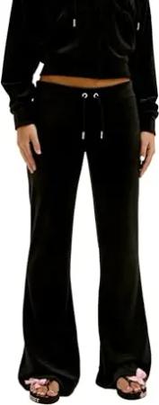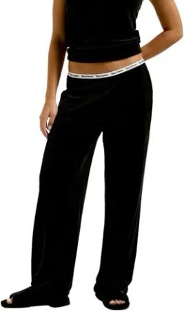 Damen Vicky Flare Pants-Pyjama Unterteil Hose Schlafhose Schlafanzughose aus Velour versch. Farben Pyjamaunterteil, Black, XS