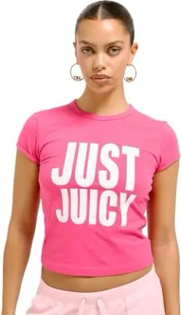 Damen JUST Juicy Cap Sleeve figubetontes Print Top Oberteil versch. Farben T-Shirt, Raspberry Sorbet, XL