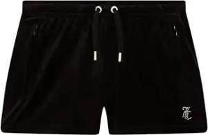 Damen Tamia Track Damenshorts Sommershorts aus Velour mit Appliaktionen in versch. Farben Lässige Shorts, Black, L
