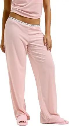 Damen Vicky Flare Pants-Pyjama Unterteil Hose Schlafhose Schlafanzughose aus Velour versch. Farben Pyjamaunterteil, Almond Blossom, XS