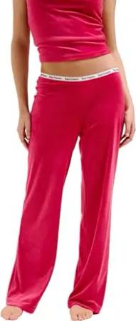 Damen Vicky Flare Pants-Pyjama Unterteil Hose Schlafhose Schlafanzughose aus Velour versch. Farben Pyjamaunterteil, Raspberry Sorbet, XS