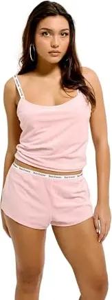 Damen Austyn Shorts-Pyjama Unterteil Hose Schlafhose Schlafanzughose aus Velour versch. Farben Pyjamaunterteil, Almond Blossom, L