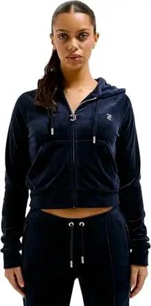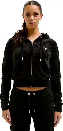 Damen Ennis Hoodie Kapuzensweatjacke, Sweatjacke mit Kapuze und Reißverschluss Kapuzenpullover, Black, XS