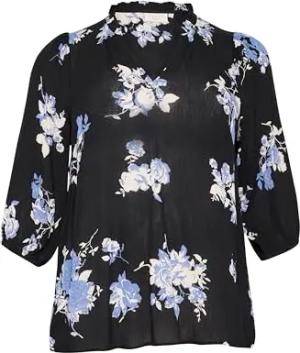 Damen Plus Size Women's Blouse V-Notch Neck Printed 3/4 Sleeve Regular Fit Bluse, Schwarz/Blauer Blumendruck, 50/Grande Taille