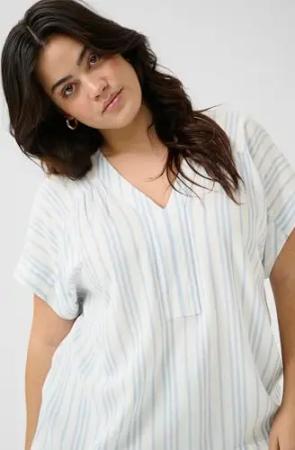 Kurzarm-Bluse KCmille 44, Chalk/Soft Chambray Stripe 44