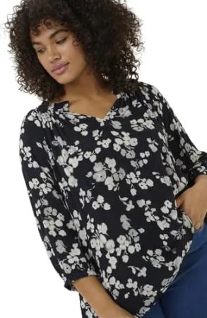 Damen Plus Size Women's Blouse 3/4 Sleeves V-Notch Neck Regular Fit Bluse, Kreide Blumen-Stickerei, 44 DE/Groß