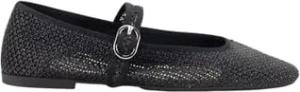 Mesh-Ballerinas für Damen, Schwarz, Riemen mit Schnalle und Nieten, 2 cm Höhe, Schwarz , 37 EU