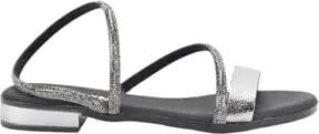 Flache Damen-Sandalen 5586, silbernes Textil, Höhe 2 cm, gepolsterte Innensohle, Schwarz , 36 EU