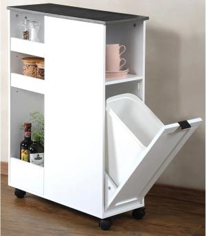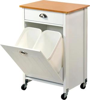 Küchenwagen mit Mülleimer - Weiß/Bambusdekor