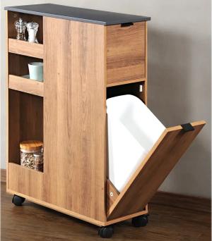 | Küchenwagen mit Mülltrennsystem, Material: Faserplatte, Maße: B 50 x H 79 x T 37 cm, Farbe: Braun, Grau | 25528 13