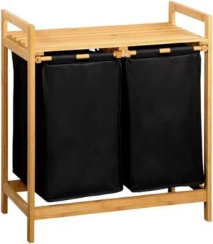 | Wäschesortierer, Material: Bambus, Polyester, Maße: 64 x 33 / Höhe: 73 cm, Farbe: Braun, Schwarz | 19487 13