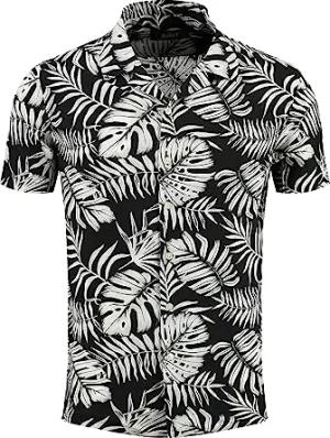 Herren Palms 1/2 Patterned Hemd, Schwarz, S