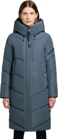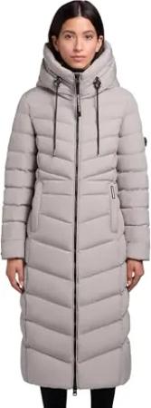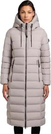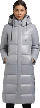 Damen extralanger Wintermantel warmer Steppmantel mit hohem Kragen und Kapuze Ingram4-YM Blizzard Grey Gr. XL