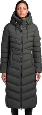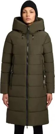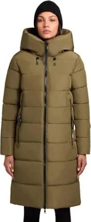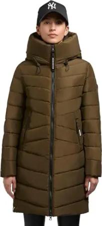 Damen Wintermantel warmer Steppmantel lang mit (abnehmbarer) Kapuze Rachel Matt-YM Old Green Gr. XL