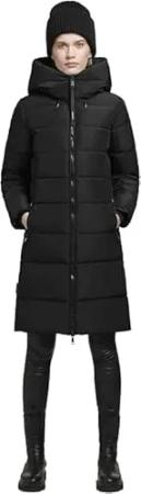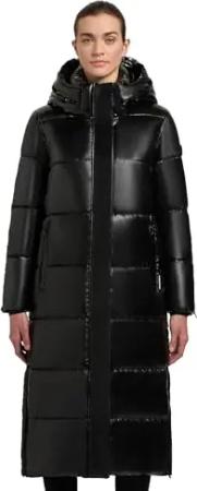 Damen glänzender warmer Winter Steppmantel lang mit abnehmbarer Kapuze Hedd Shiny-YM Black Gr. S