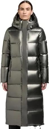 Damen glänzender warmer Winter Steppmantel lang mit abnehmbarer Kapuze Hedd Shiny-YM Medium Grey Gr. S