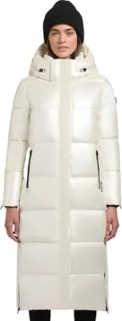 Damen glänzender warmer Winter Steppmantel lang mit abnehmbarer Kapuze Hedd Shiny-YM Offwhite Gr. M