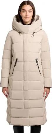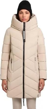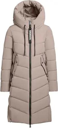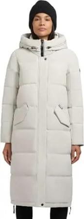 Damen Langer Wintermantel warmer Steppmantel mit Schlüsselanhängerund verstellbarer Kapuze Odana3-YM Feather Beige Gr. L