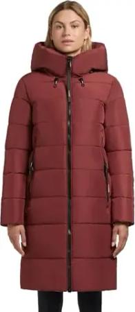 Damen Langer Wintermantel warmer Steppmantel mit Schlüsselanhängerund verstellbarer Kapuze Odana3-YM Dark Red Gr. L