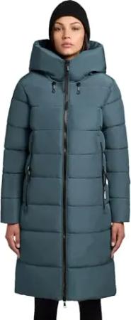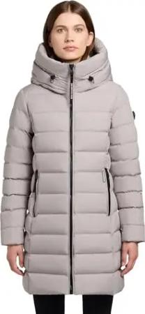 Damen Langer Wintermantel warmer Steppmantel mit schimmerndem Innenfutter und Kapuze Nekar-YM Blizzard Grey Gr. L