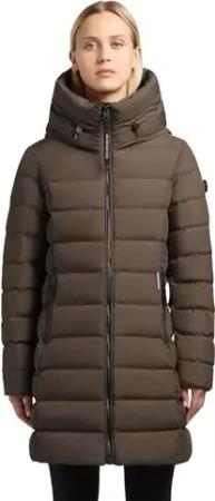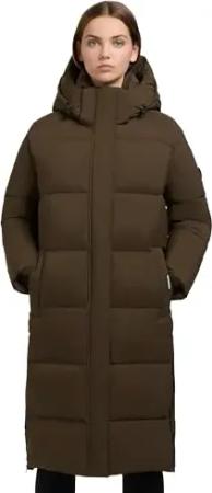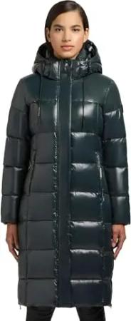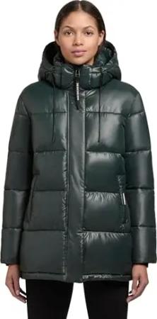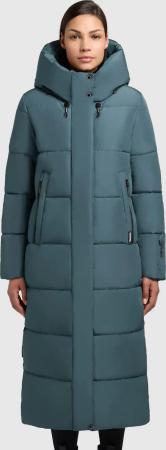 Damen Langer Wintermantel warmer Steppmantel mit schimmerndem Innenfutter und Kapuze Nekar-YM Dark Green Gr. L