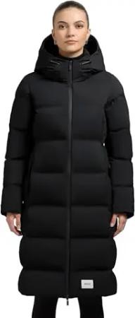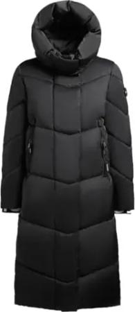 Damen glänzender warmer Winter Steppmantel lang mit abnehmbarer Kapuze Hedd Shiny-YM Black Gr. XS