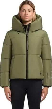 Damen warme Winterjacke Kurze Steppjacke mit hohem Kragen und Verstellbarer Kapuze Audrey Matt Fern Green Gr. S