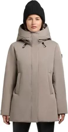Damen Wintermantel warmer Parka mit weichem Teddyfleece an der Kapuze, Taillenzugband und magnetischer Abdeckleiste Agneta-YM Stone Taupe Gr. S