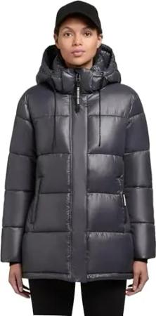 Damen Wintermantel warmer Steppmantel schimmernd mit Kapuze Jadet2-YM Dark Cloud Blue Gr. L