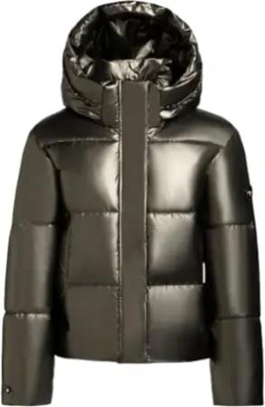 Damen Winterjacke in glänzender Optik Warme wetterfeste Steppjacke mit Abnehmbarer Kapuze Devina Shiny Mud Bronze Gr M