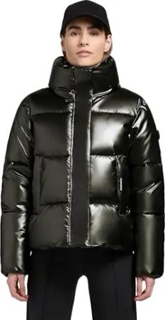 Damen Winterjacke warme Steppjacke kurz aus angesagtem glänzenden Material Rinja Shiny-YM Dark Green Gr. L