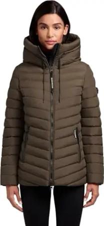 Damen Winterjacke warme Steppjacke mit Zwei-Wege-Reißverschluss und Verstellbarer, hochschließender Kapuze Pace-YM Dark Green Gr. XS