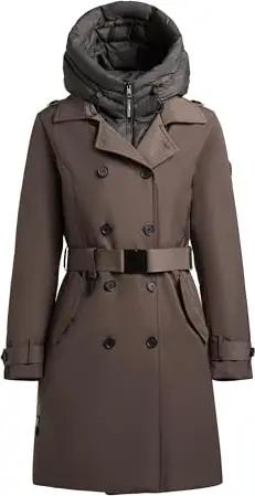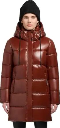 Damen Wintermantel warmer Steppmantel schimmernd mit Kapuze Jadet2-YM Coconut Brown Gr. XL