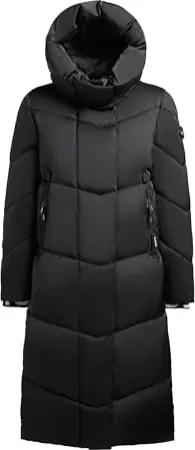 Damen langer Wintermantel warmer Steppmantel mit Kapuze und hohem Kragen Lola-YM Black Gr. XL