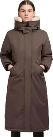 Damen Wintermantel warmer Parka mit weichem Teddyfleece an der Kapuze, Taillenzugband und magnetischer Abdeckleiste Agneta-YM Coconut Brown Gr. L
