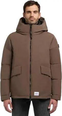 Herren warme Winterjacke kurz mit Kapuze, gesteppten Ärmeln und hohem Kragen Gero-YM City Taupe Gr. L
